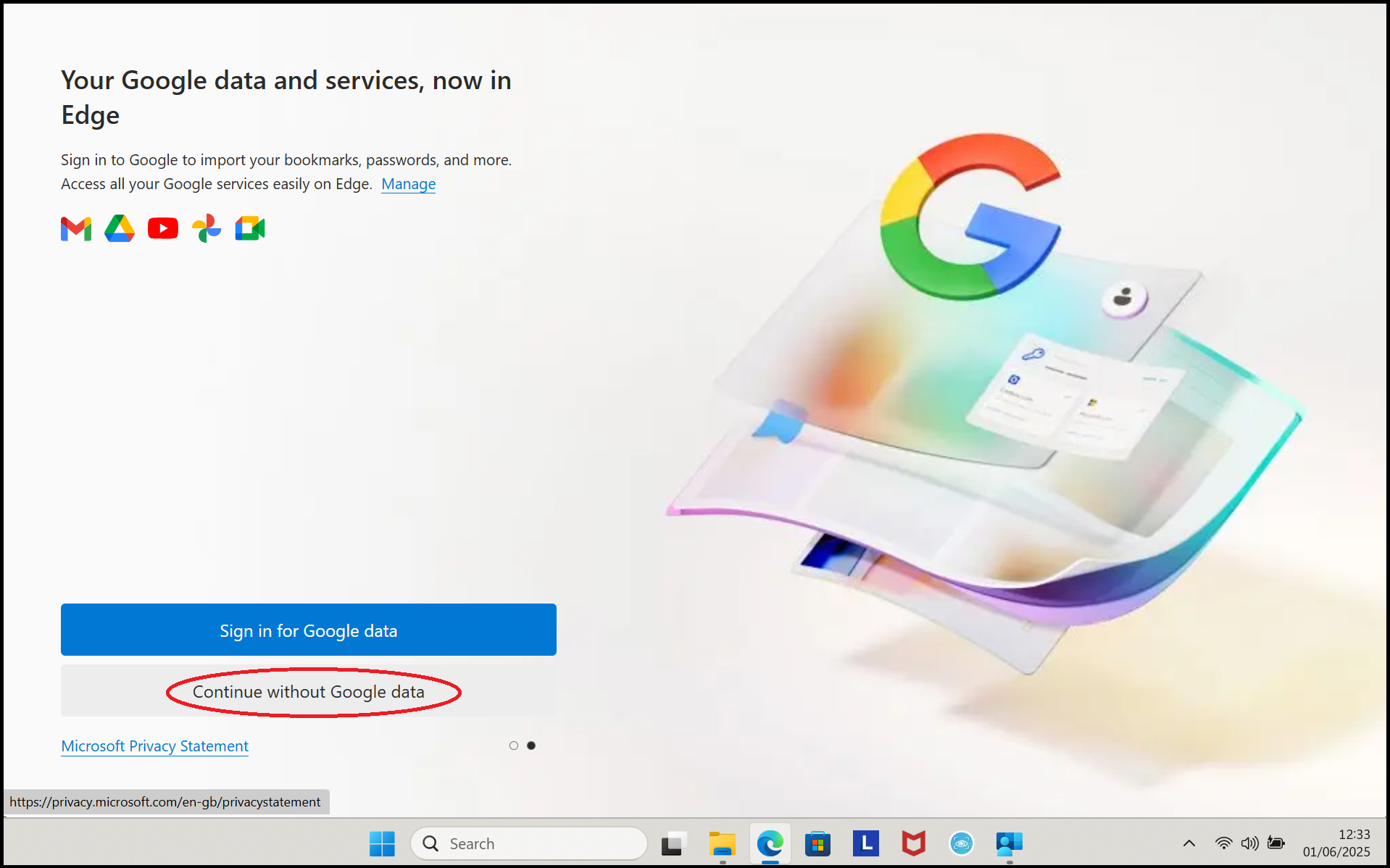 3. Click on 'Continue without Google data'.