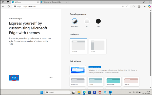 4. The next question is about the way Edge will look. This is personal preference, so select anything that you would like to change, then on 'Next' when you are ready.