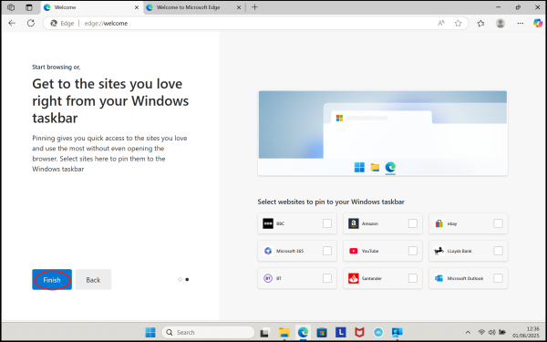 Microsoft Edge has now been configured. Please click the 'Back' button on your Internet Browser.