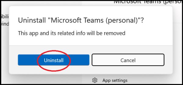 4. A confirmation prompt will appear, click on 'Uninstall'.
