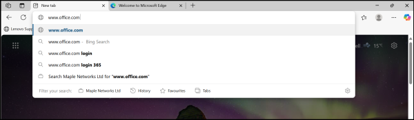 8. Type in 'www.office.com' in the address bar, then press the Enter key on the keyboard.