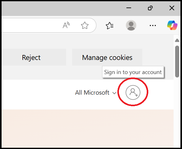 9. Click on the user icon to the right of where it says 'All Microsoft'.