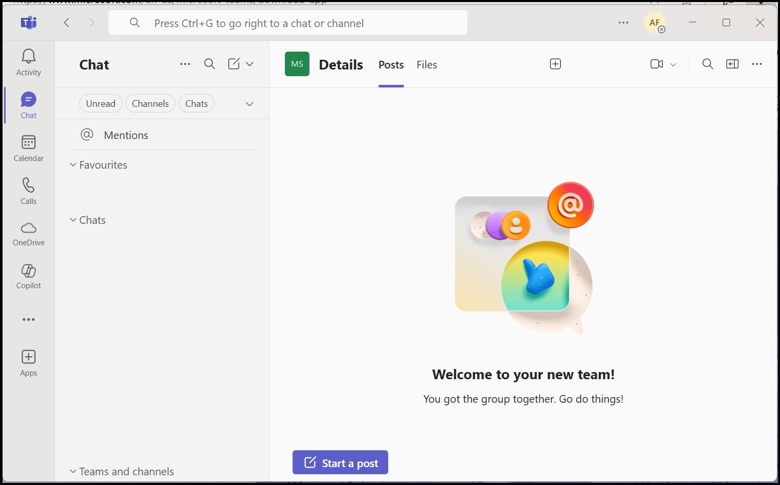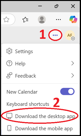 12. Teams will now load. Click on the three dots in the top right corner of the screen (the ones to the left of your initials). Then click on 'Download the desktop app'.