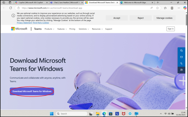 6. We now need to install the correct version of Teams. Load Microsoft Edge.