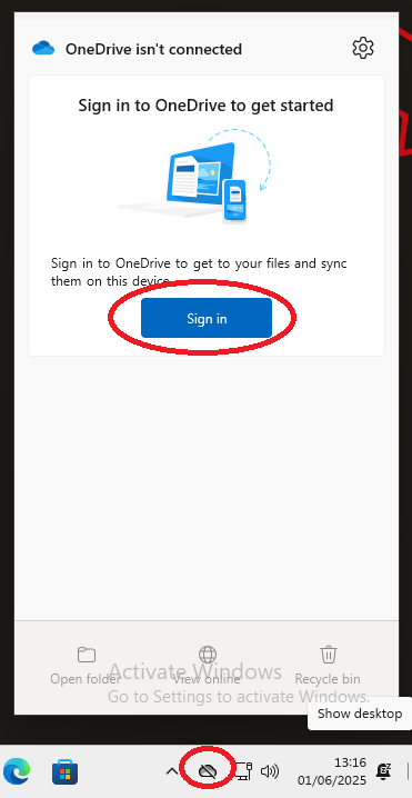 1. Click on the OneDrive icon that is in the System Tray. Then, click on 'Sign in'.